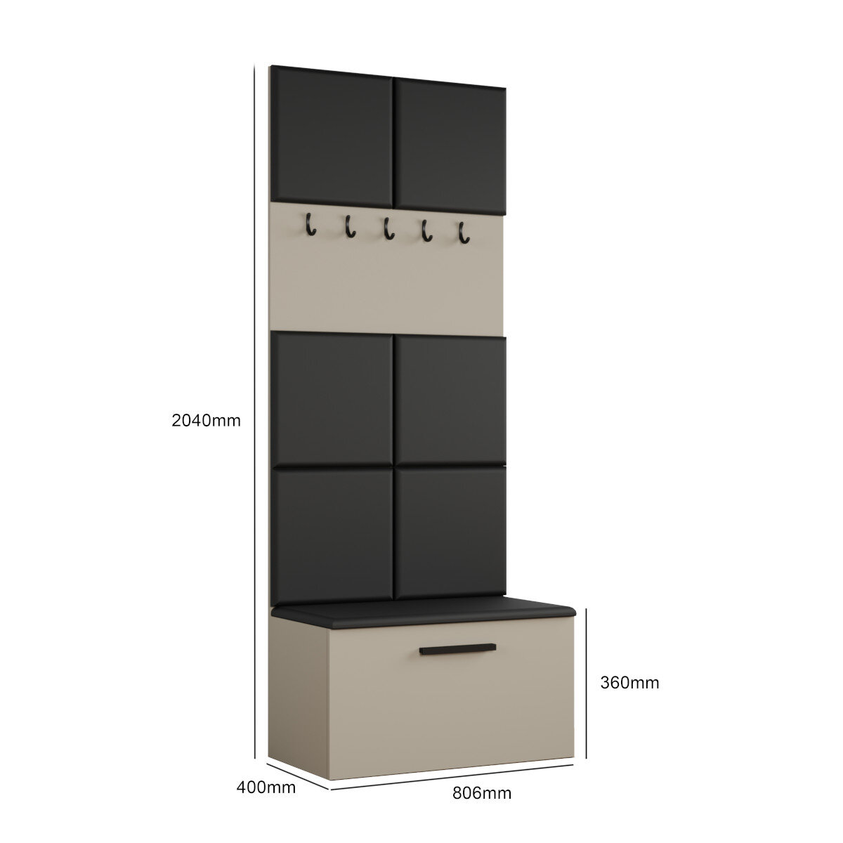 - ✅ Wygodne Siedzisko z Szafką: Zintegrowane siedzisko ułatwia zmianę obuwia, a pojemna szafka pod nim to idealne miejsce na przechowywanie butów i akcesoriów.