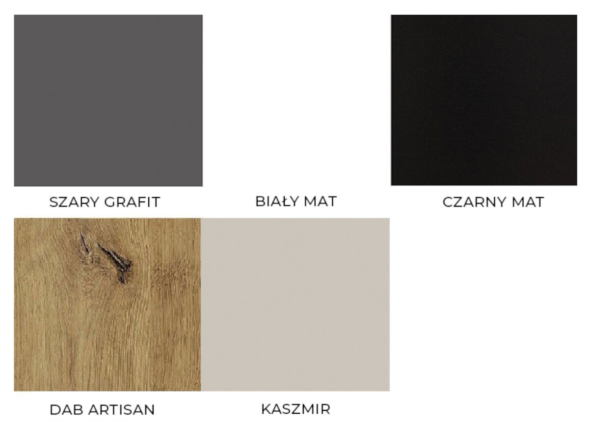 biały mat, czarny mat, dąb artisan, kaszmir, szary