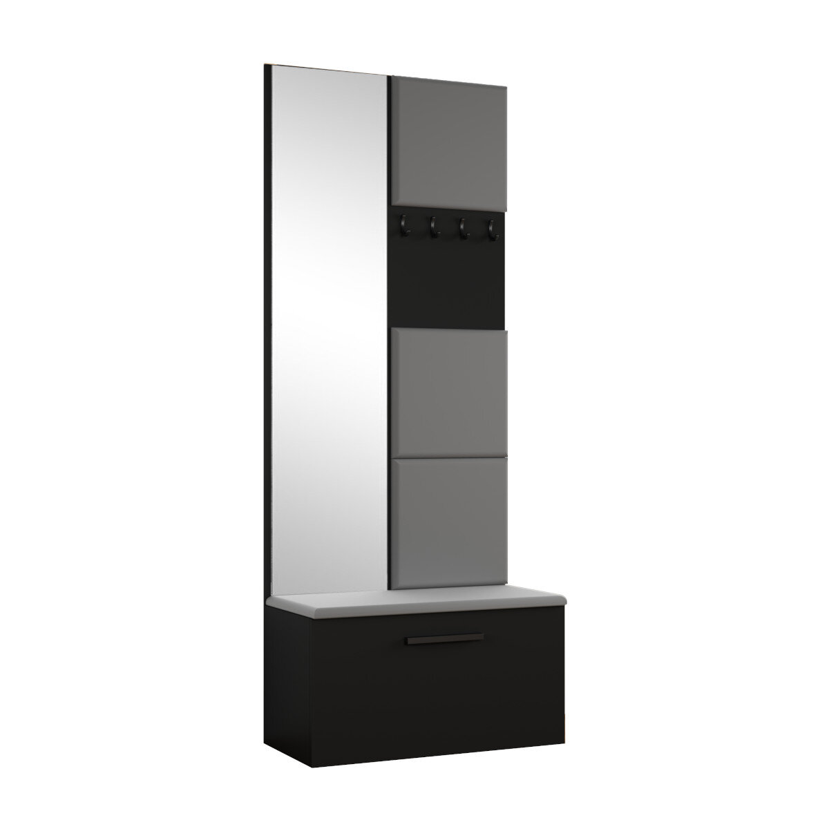 Dzięki przemyślanej konstrukcji, garderoba modułowa Margaret III z lustrem oferuje w jednym miejscu wszystko, czego potrzebujesz: wygodne, tapicerowane siedzisko z pojemną szufladą, praktyczne wieszaki na ubrania oraz wysoką taflę lustra.