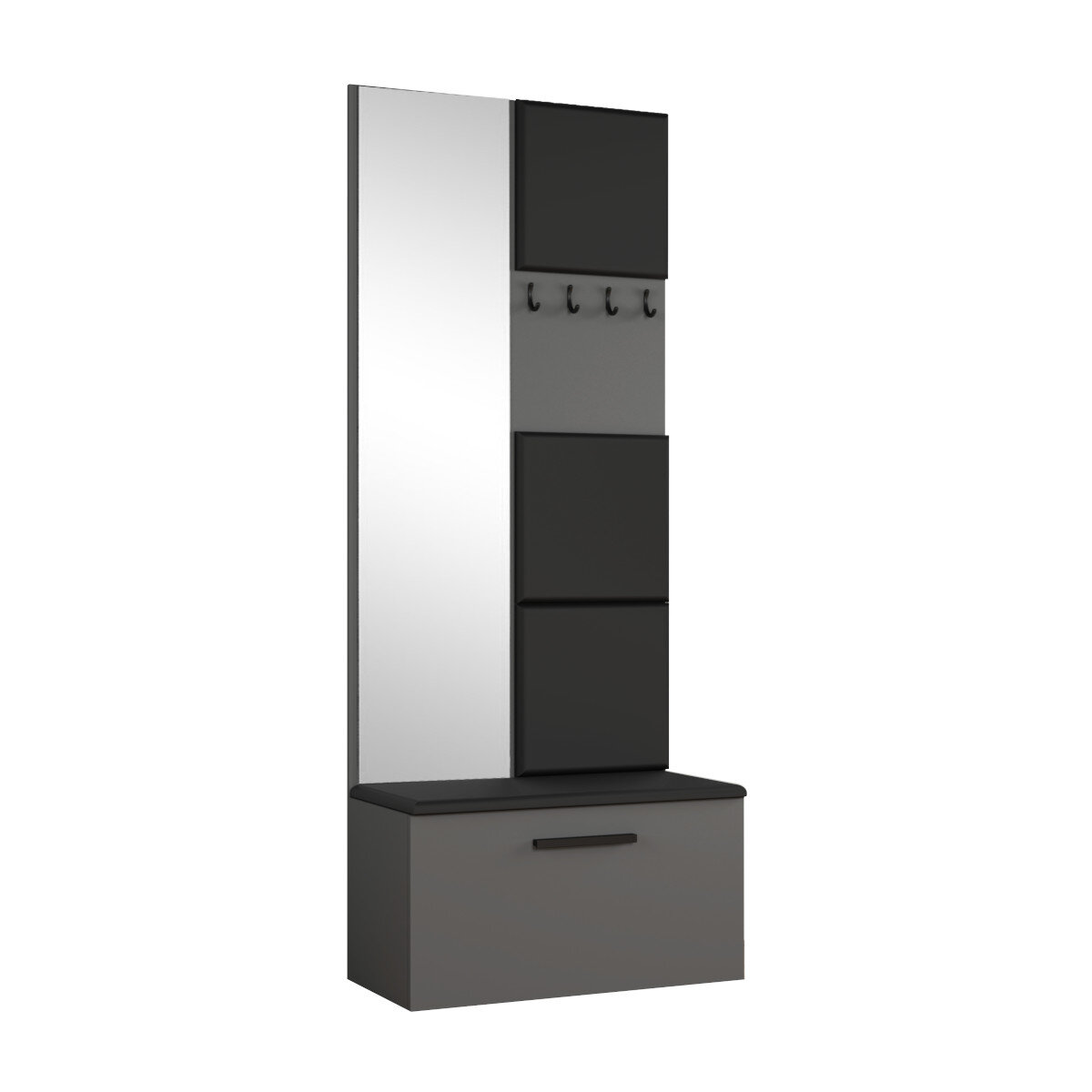• Duże, Praktyczne Lustro: Wysoka tafla lustra nie tylko ułatwia codzienne przygotowania, ale również optycznie powiększa i rozjaśnia przestrzeń przedpokoju.
