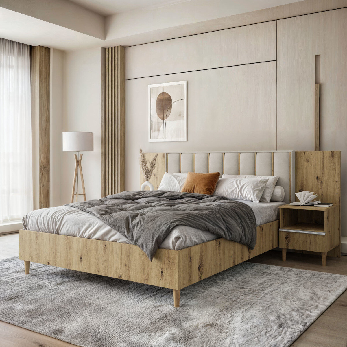 - ✅ Trwała Konstrukcja: Rama z grubej, 16-milimetrowej płyty laminowanej i solidne, drewniane nogi to gwarancja stabilności i wieloletniej trwałości.