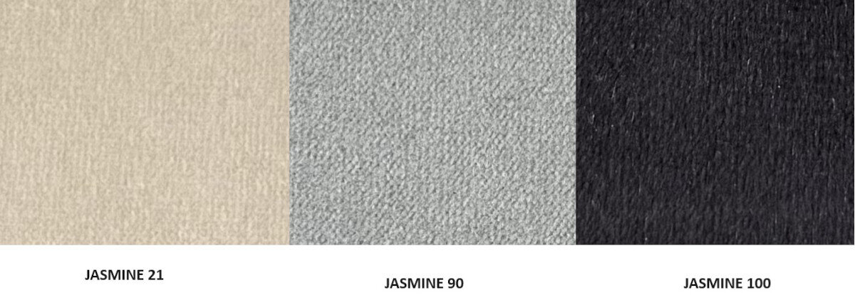 - Dostępne kolory tkaniny obiciowej: Jasmine 21 (beż), Jasmine 90 (szary), Jasmine 100 (czarny) .