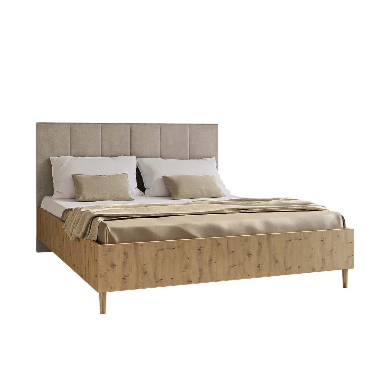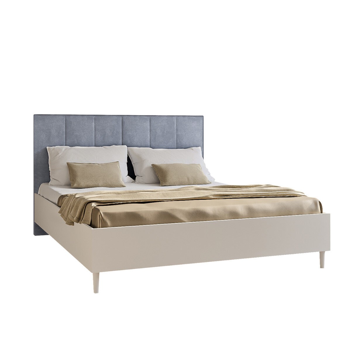 - ✅ Eleganckie Tapicerowane Wezgłowie: Wysokie, miękkie zagłowie z pionowymi przeszyciami to detal, który dodaje sypialni przytulności i luksusowego charakteru.