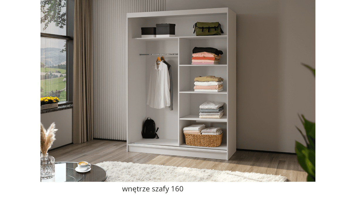 • Wersja Standardowa: Wszystkie szafy posiadają przemyślany, standardowy układ z drążkiem na wieszaki i praktycznymi półkami.
