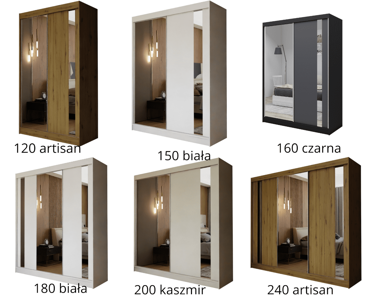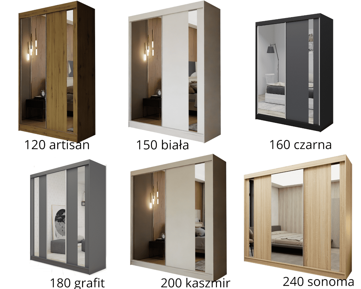 Niezależnie od wielkości Twojego pomieszczenia, nasza szafa przesuwna Gracja z lustrem jest dostępna w rozmiarze, który spełni Twoje oczekiwania.