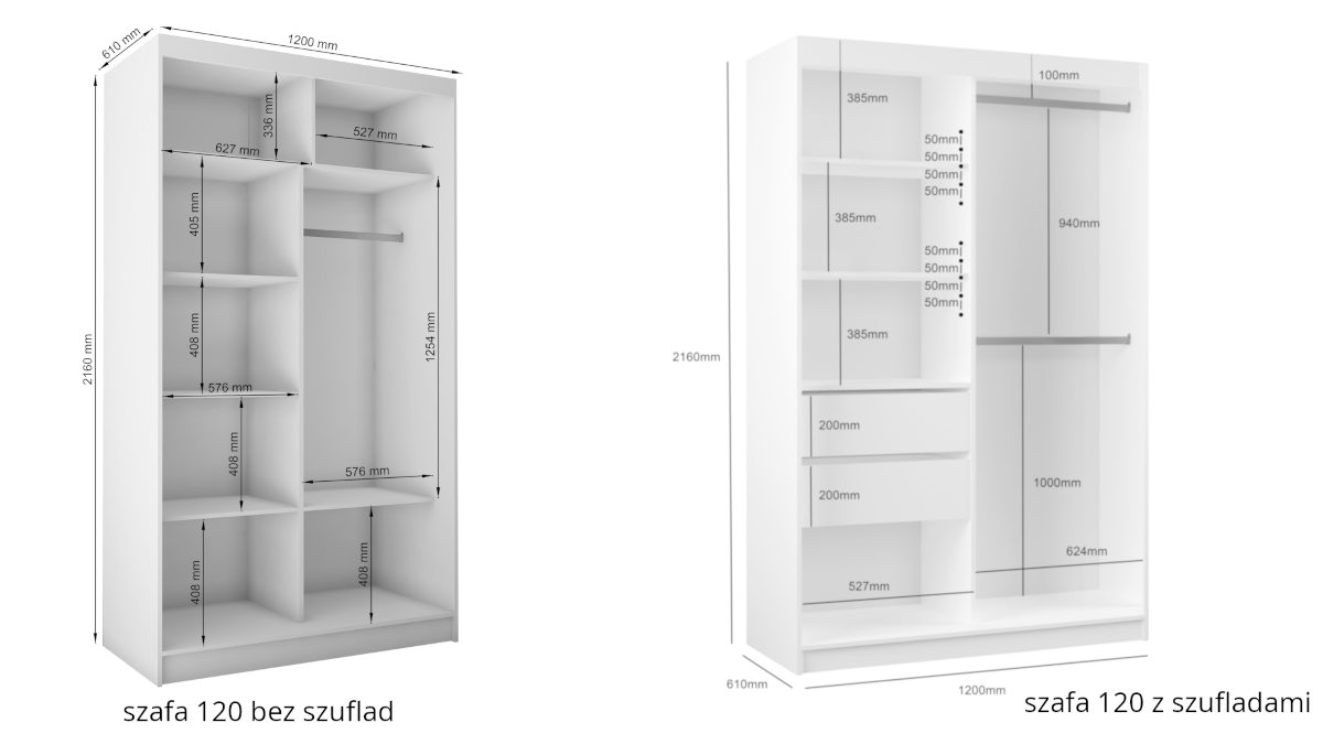 Wymiary | 120x216x61, 150x216x61, 160x216x61, 180x216x61, 200x216x61, 240x216x61 |