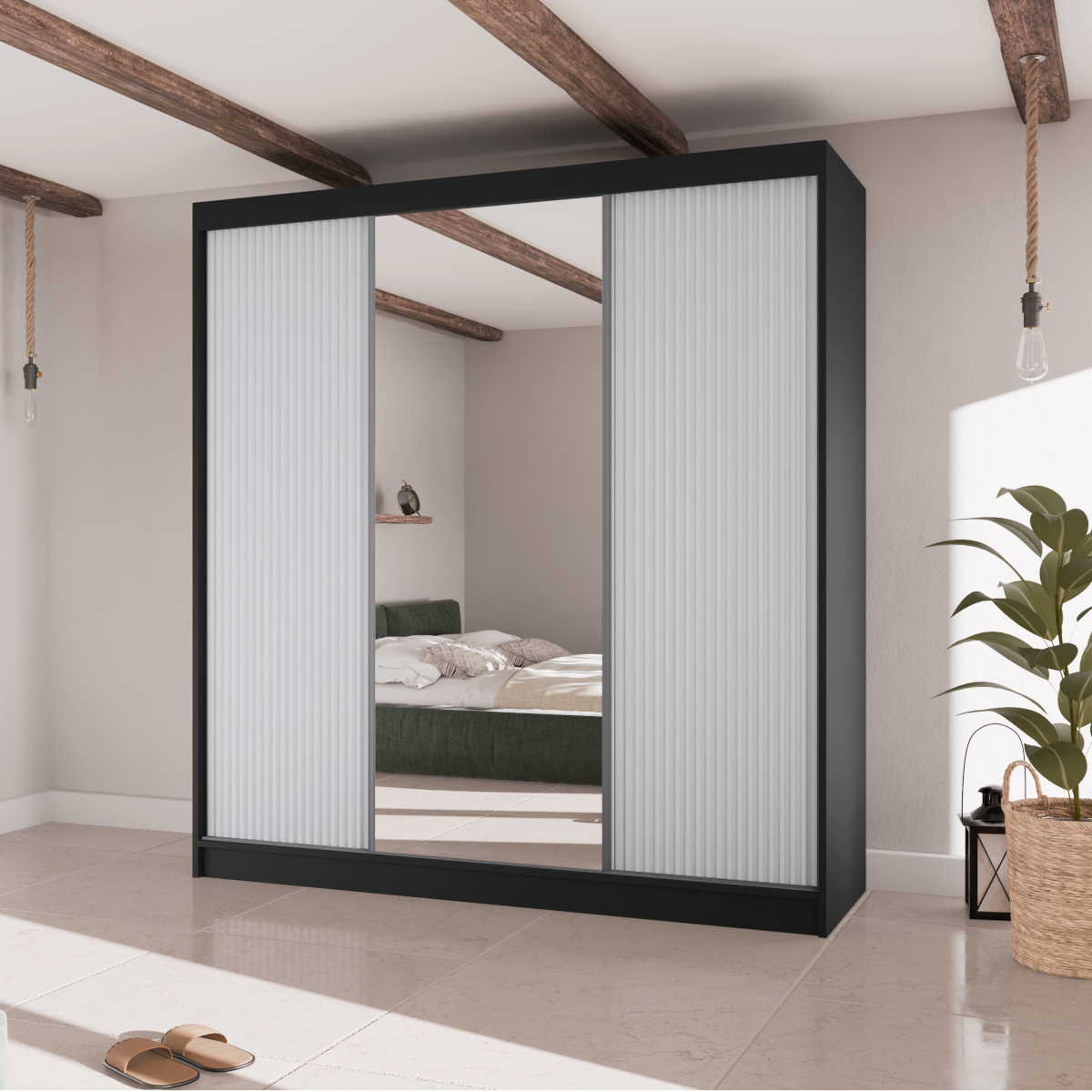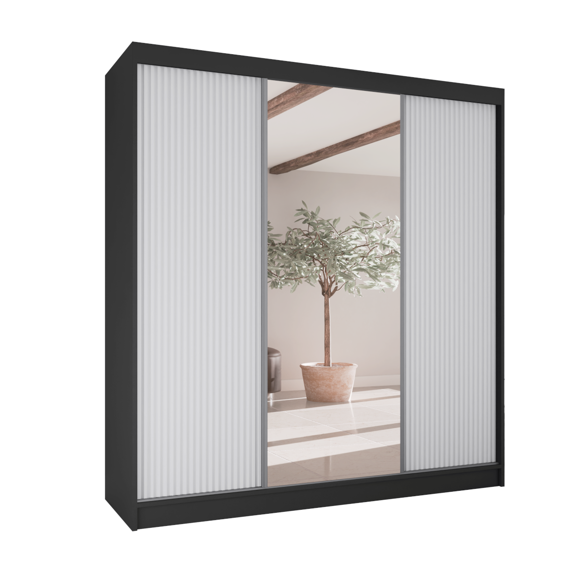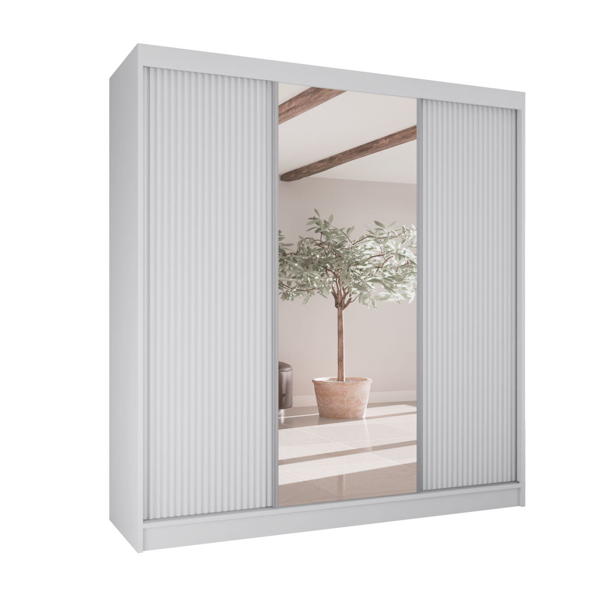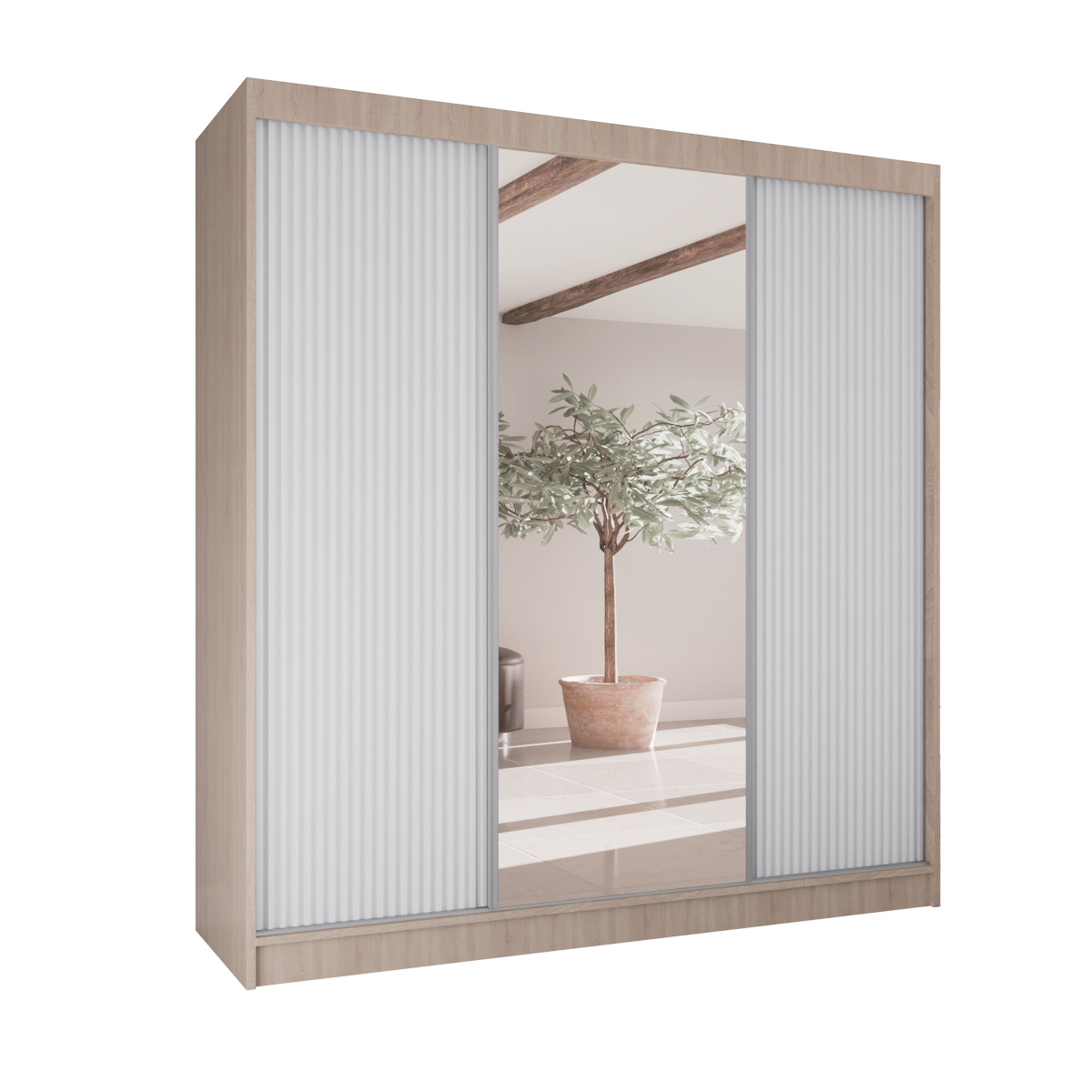 Poznaj szafę przesuwną RYFLE  – mebel, który wniesie do Twojego wnętrza najnowsze trendy i niezrównaną funkcjonalność. To idealna propozycja dla osób poszukujących nie tylko pojemnego miejsca do przechowywania, ale także wyrazistego elementu dekoracyjnego. Charakterystyczne, ryflowane fronty o trójwymiarowej fakturze nadają bryle głębi i unikalnego charakteru, a duże, centralnie umieszczone lustro dodaje elegancji i optycznie powiększa przestrzeń.