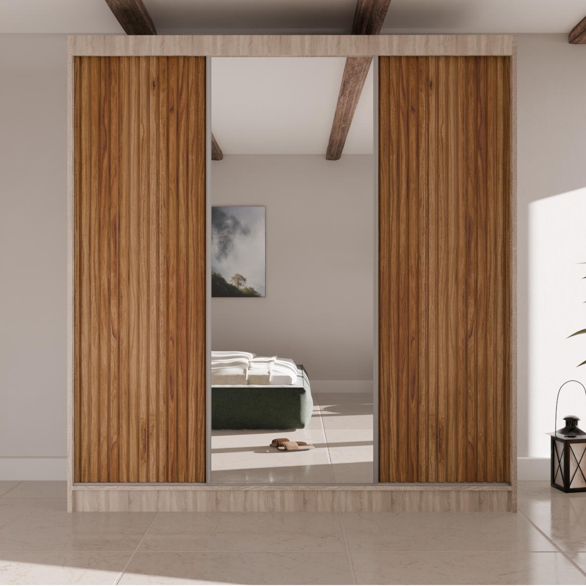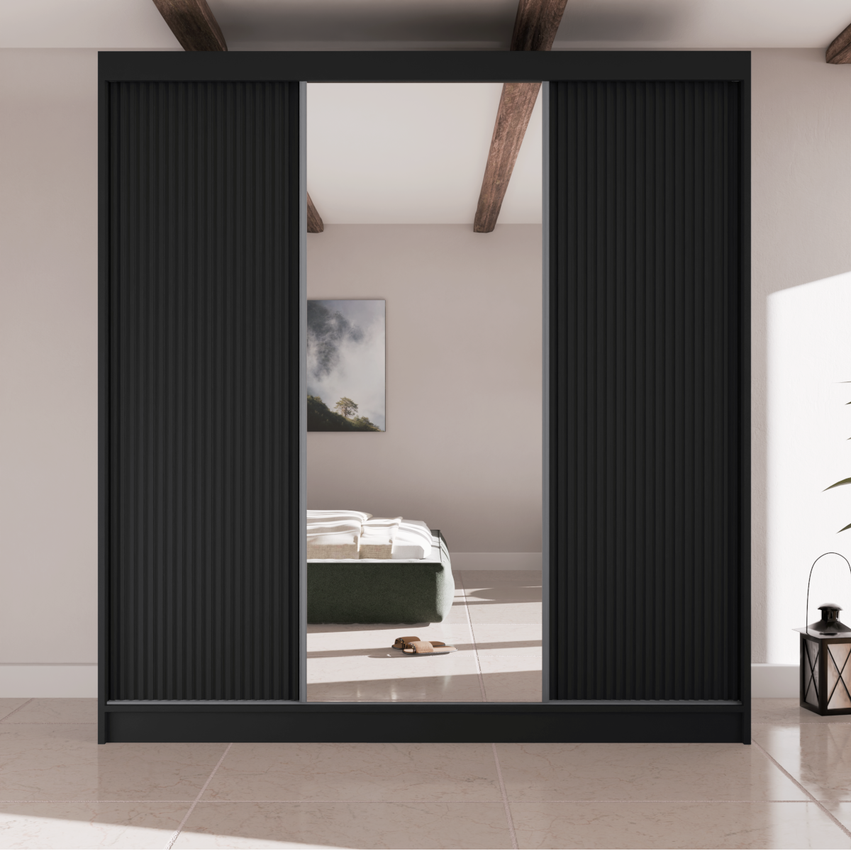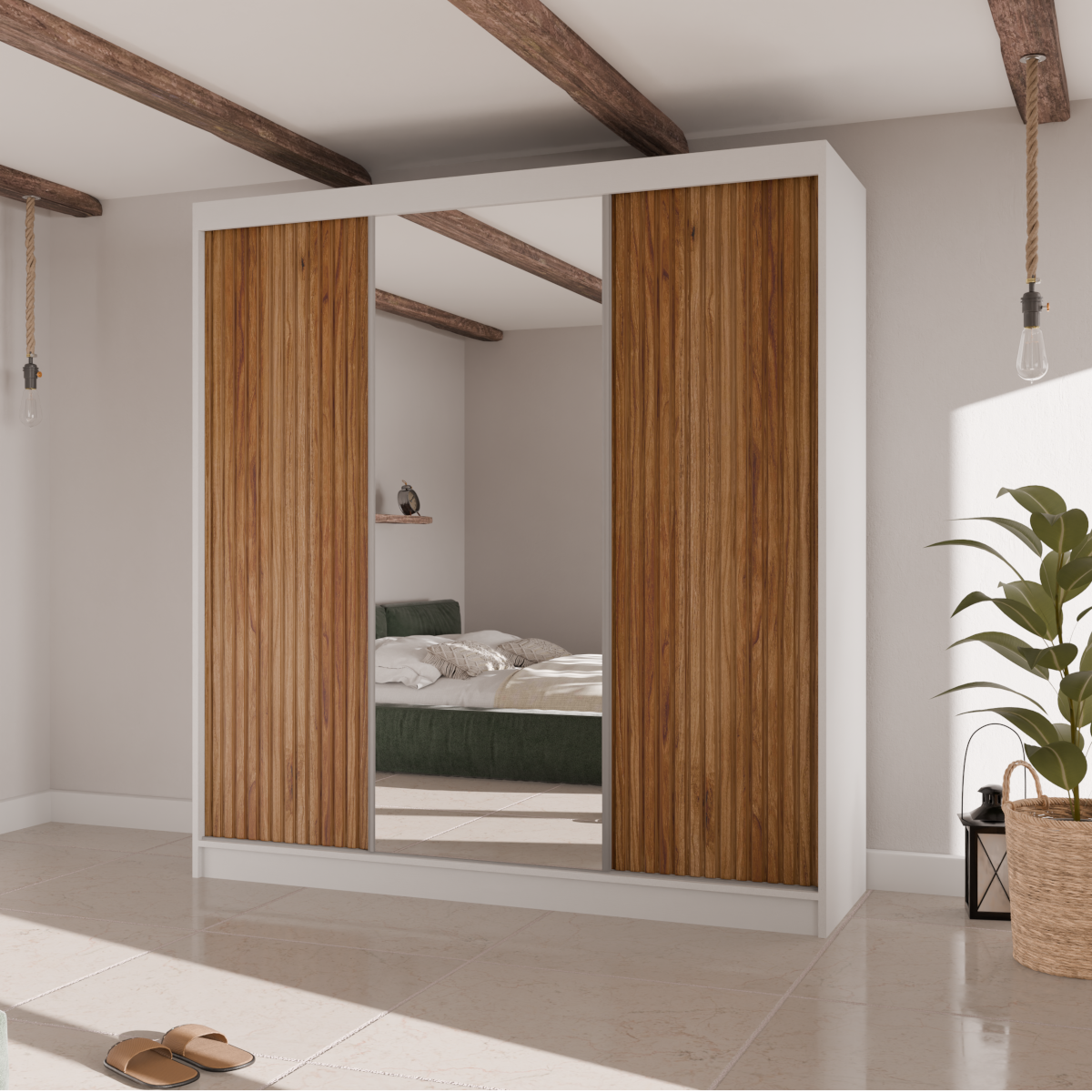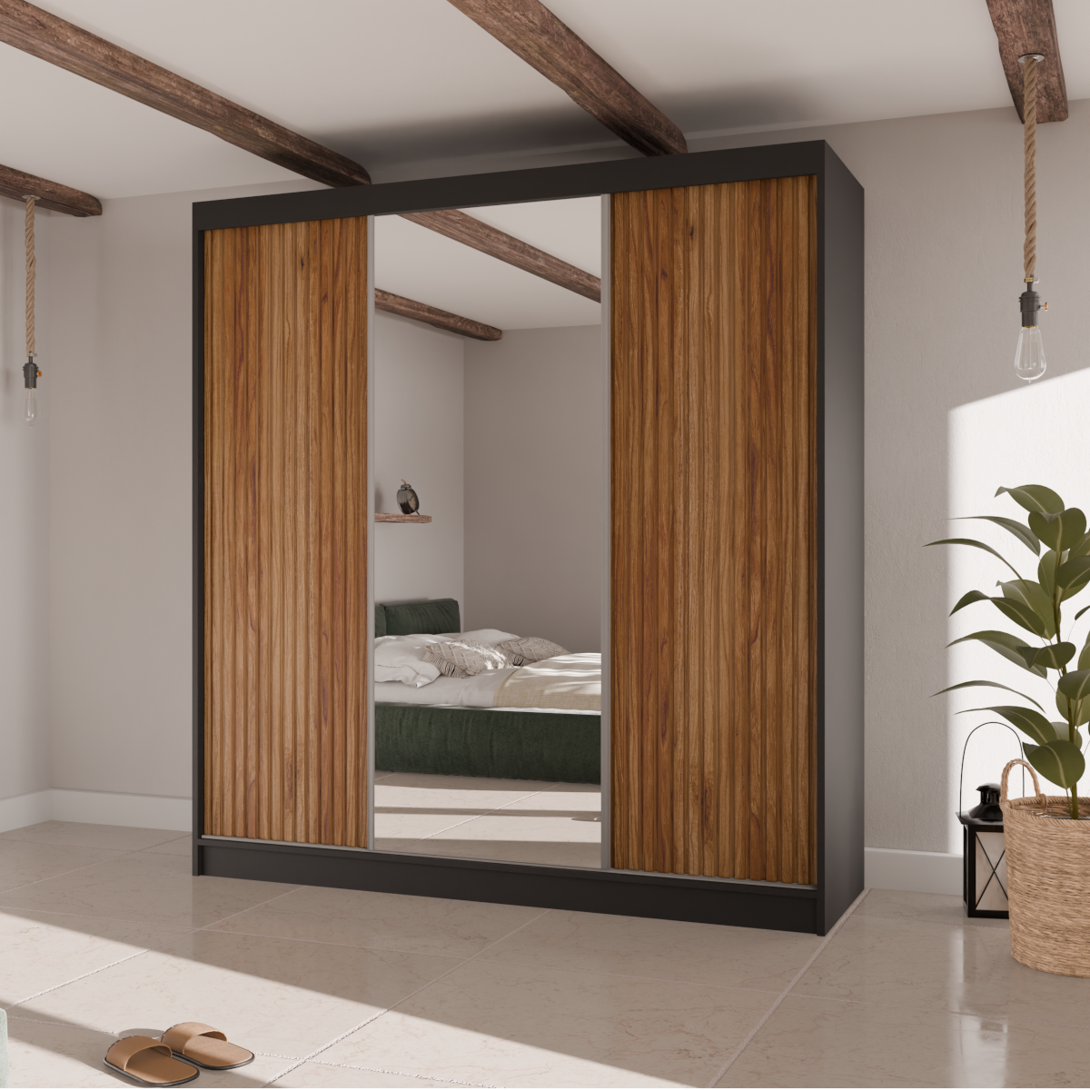 Poznaj szafę przesuwną RYFLE  – mebel, który wniesie do Twojego wnętrza najnowsze trendy i niezrównaną funkcjonalność. To idealna propozycja dla osób poszukujących nie tylko pojemnego miejsca do przechowywania, ale także wyrazistego elementu dekoracyjnego. Charakterystyczne, ryflowane fronty o trójwymiarowej fakturze nadają bryle głębi i unikalnego charakteru, a duże, centralnie umieszczone lustro dodaje elegancji i optycznie powiększa przestrzeń.